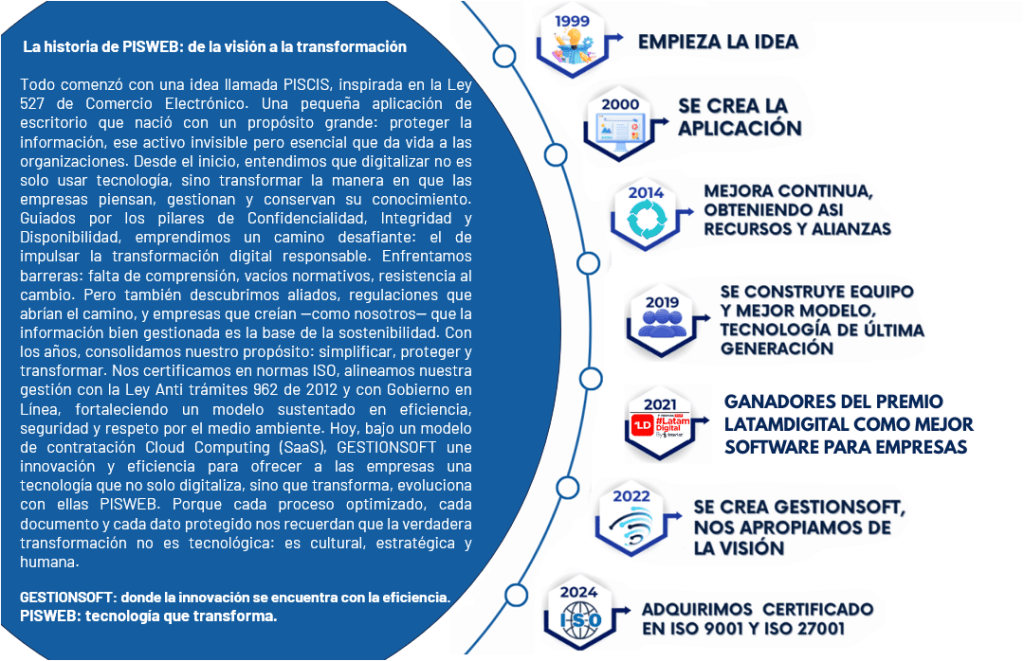 Impulsamos a las organizaciones hacia la transformación digital, creando ecosistemas de información seguros y sostenibles, donde la calidad y la cultura cero papel se convierten en motor de innovación y confianza.